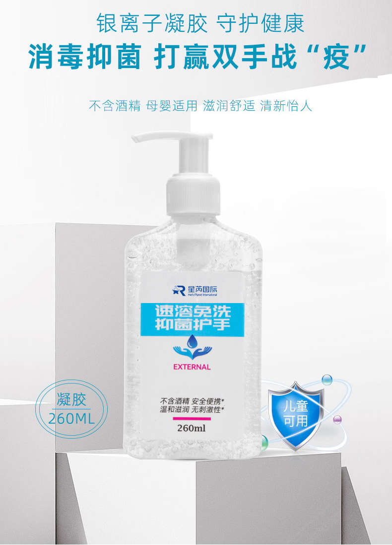 銀離子抑菌凝膠可以在不需要清水沖洗的前提下使用,有效的清除和抑制細菌。